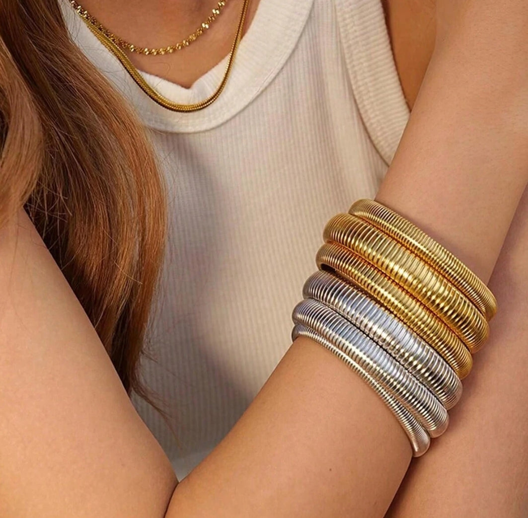 Golden/Silvery Bangle Bracelets Set (2Pcs)