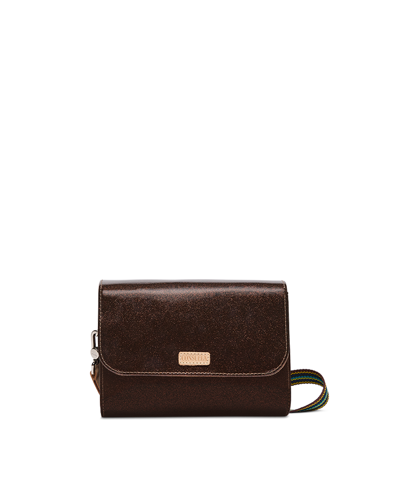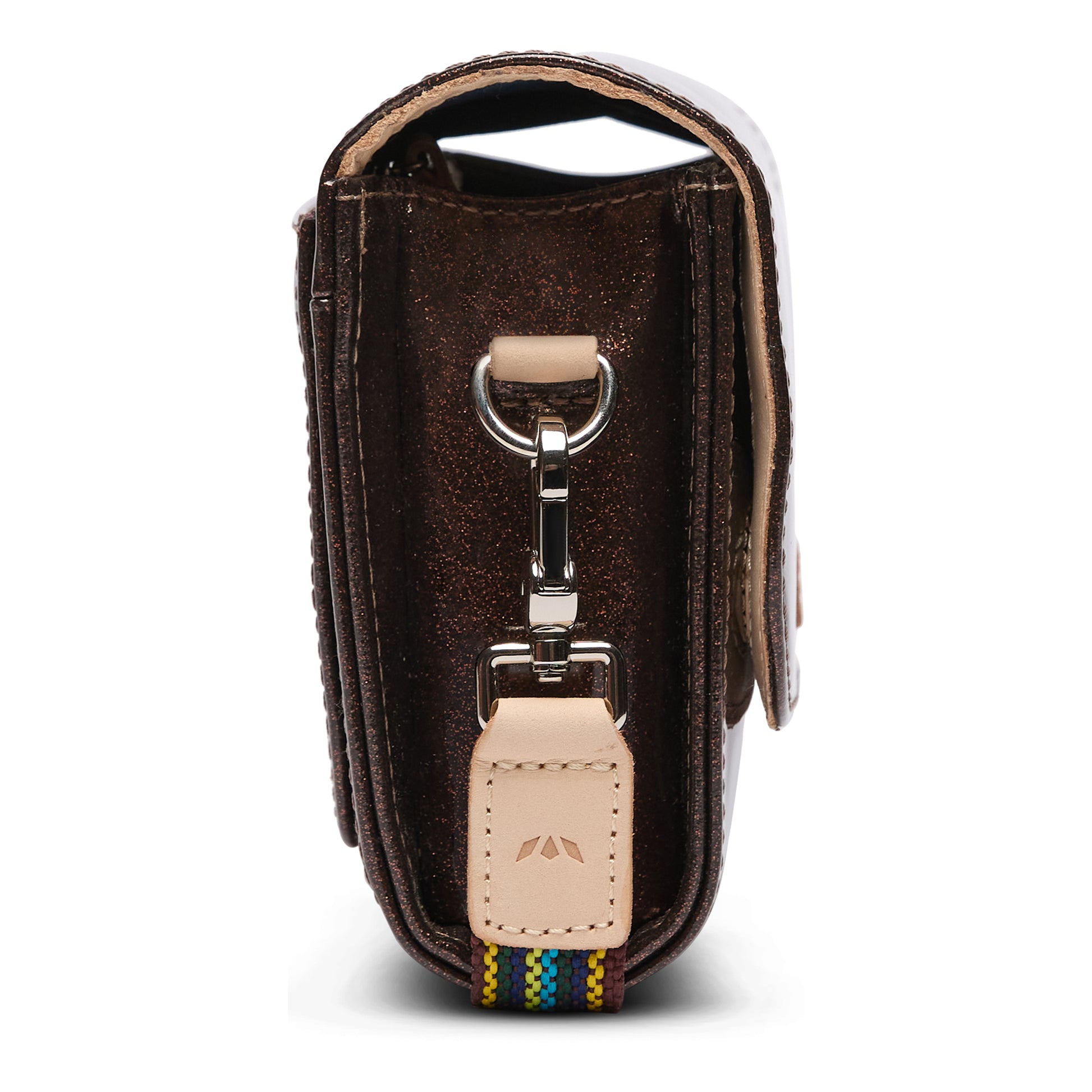 - Adjustable woven crossbody strap