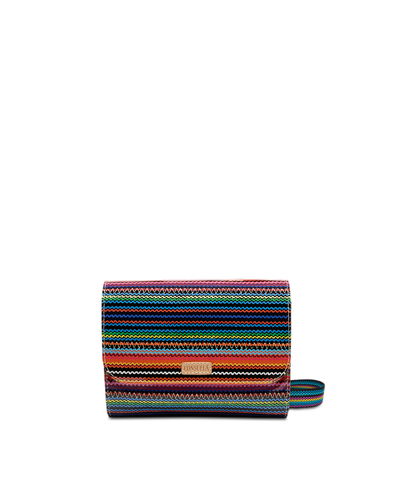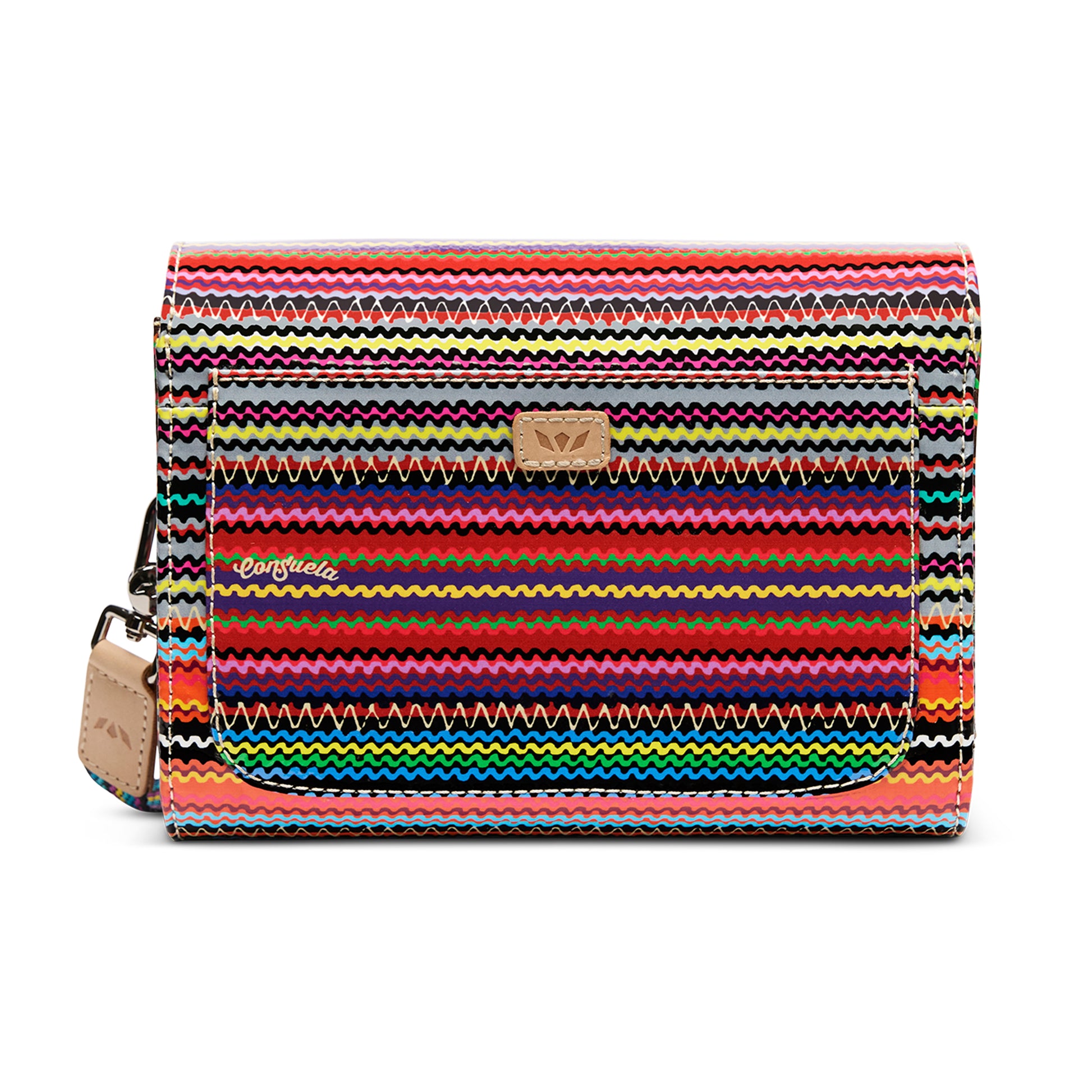 - Adjustable woven crossbody strap