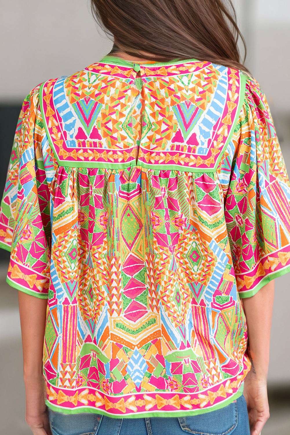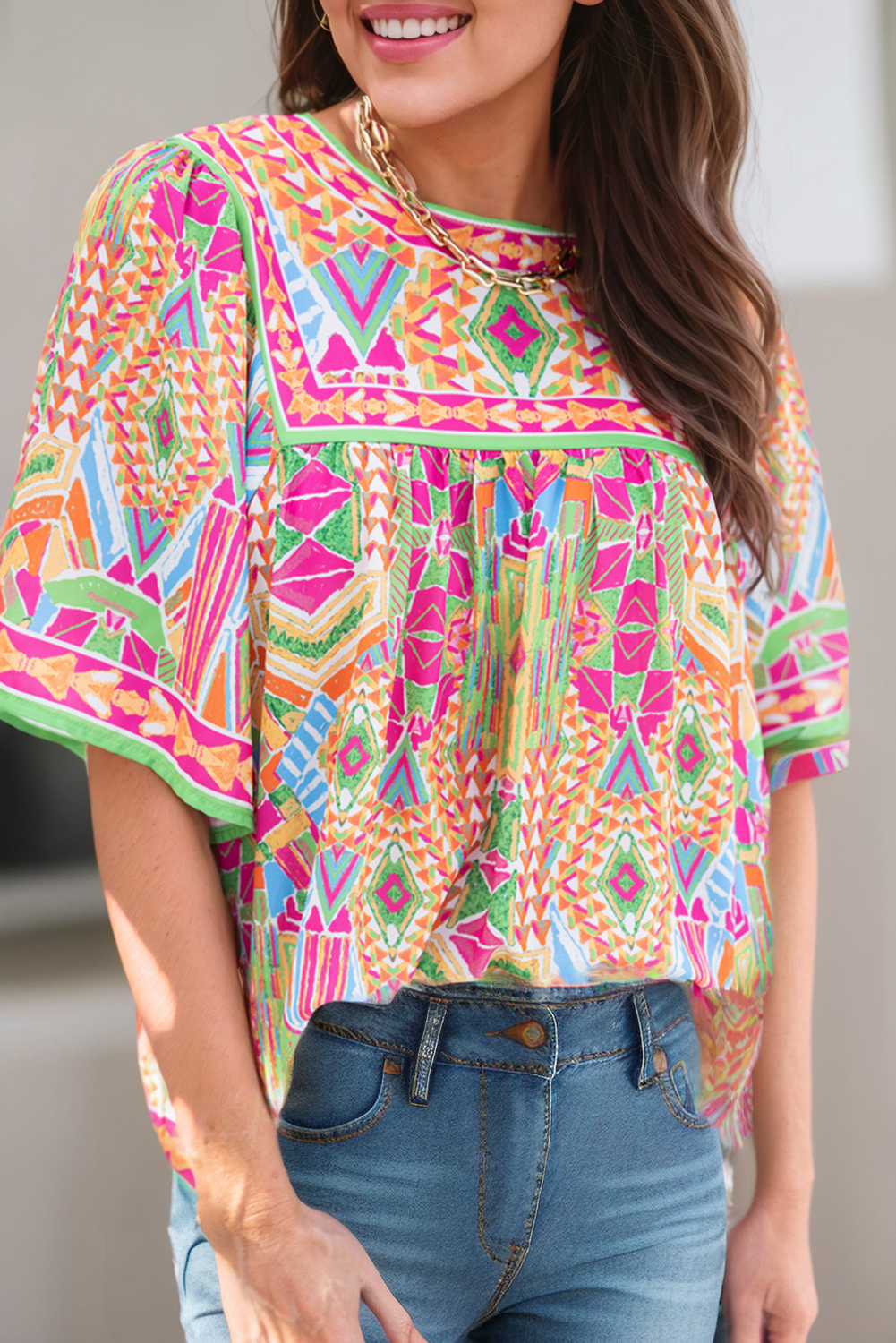 Women Fashion Geometric Print Loose Babydoll Blouse | S-XL