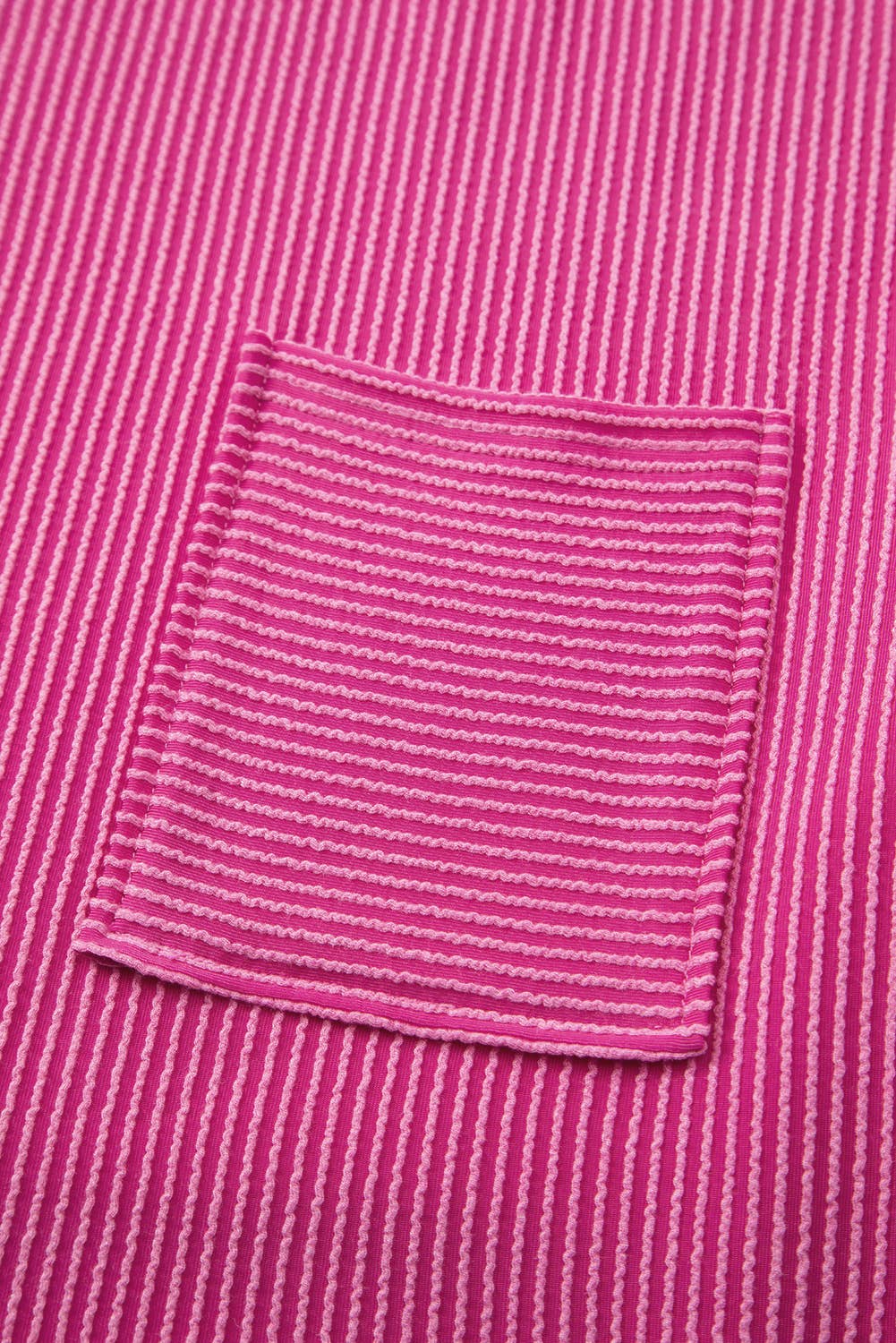 Women Solid Rib Chest Pocket Loose Fit Round Neck Top | S-XL